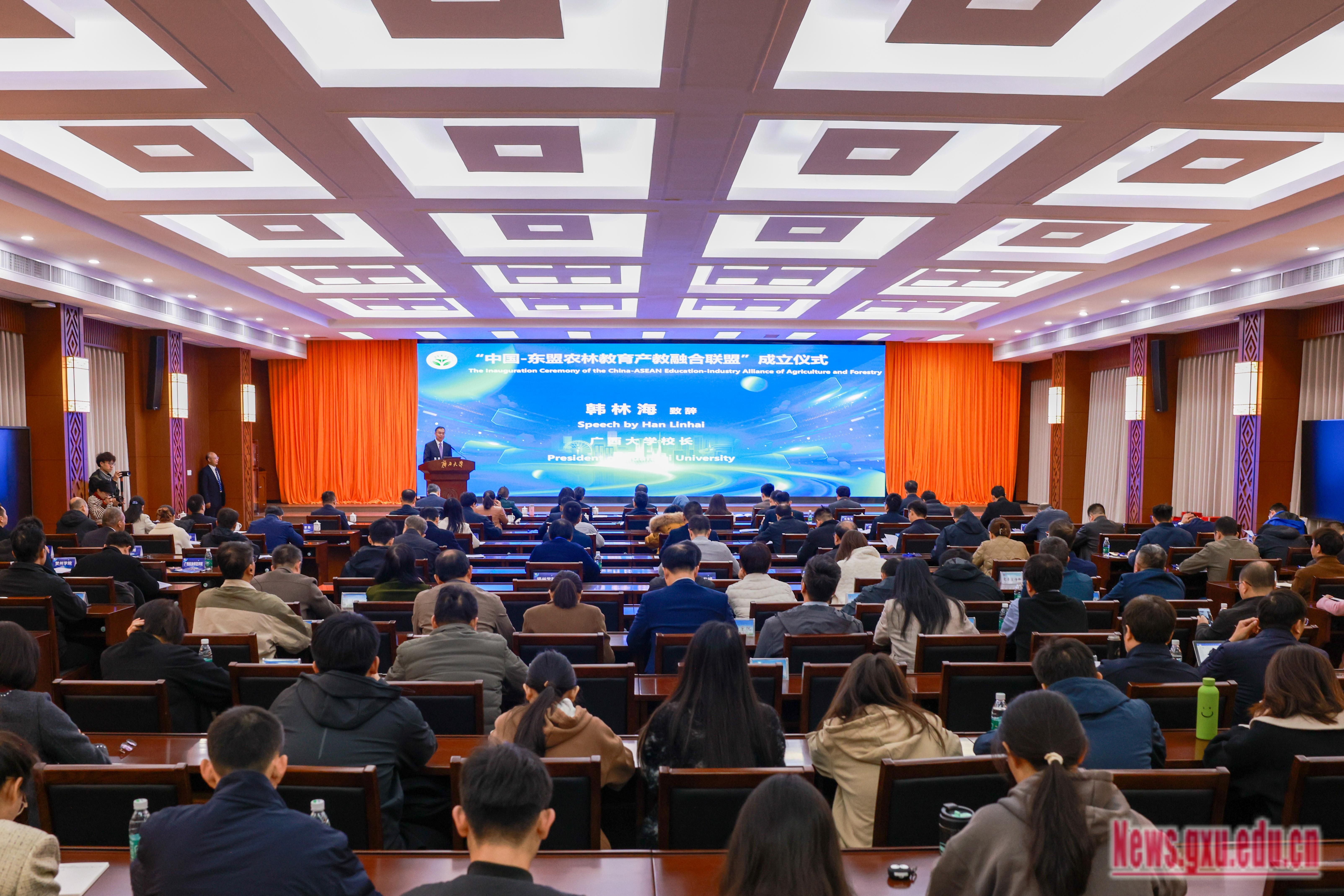 On February 20th, the Inaugural Ceremony of the "China-ASEAN Alliance for Integration of Agriculture and Forestry Education with Industry" and the 1st China-ASEAN Seminar on the Development of Integration of Agriculture and Forestry Education with Industry were held at our university. Han Linhai, Deputy Secretary of the Party Committee and President of Guangxi University, attended and delivered a speech. Tang Bowen, Deputy Director of the Agriculture, Forestry, Medicine and Health Education Division of the Higher Education Department of the Ministry of Education; Yan Bingchen, Deputy Secretary of the Party Leadership Group and Deputy Director of the Department of Education of the Guangxi Zhuang Autonomous Region; Zuo Ming, Chief Agronomist of the Department of Agriculture and Rural Affairs of the Guangxi Zhuang Autonomous Region; and Jiang Guixiong, Second-Class Inspector of the Forestry Bureau of the Guangxi Zhuang Autonomous Region, attended and addressed the meeting respectively. Xiao Jianzhuang, Vice President of our university, was present, and Feng Jiaxun, Vice President, presided over the meeting.